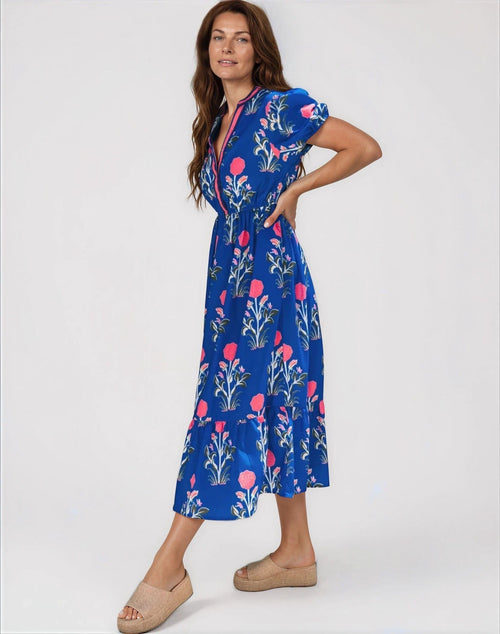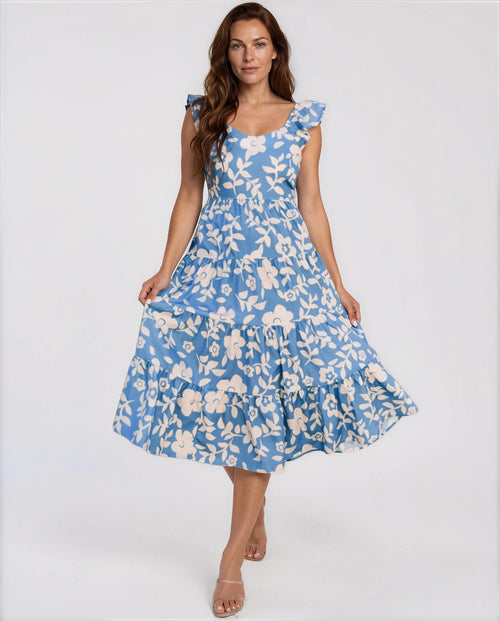 Sofia Women’s Floral Print Summer Midi Dress in Blue