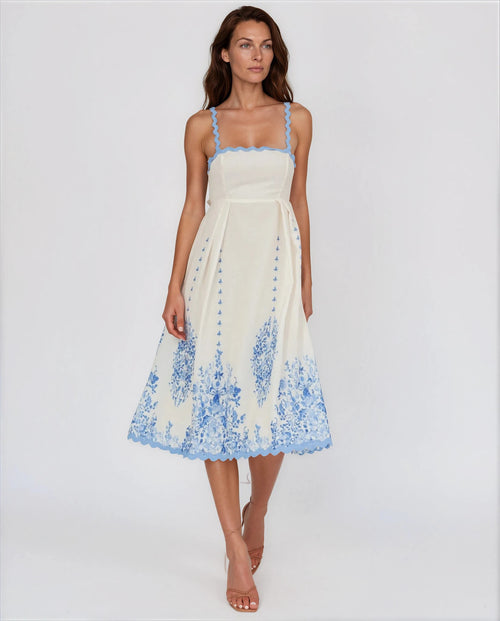 Chiara Women’s Floral Print Summer Midi Dress in White